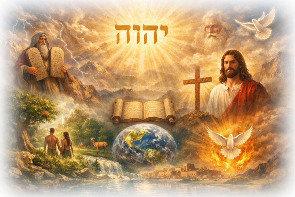 We believe in the God of Abraham, Isaac, and Jacob/Israel. This God gave the Ten Commandments to the Israelites through Moses. We believe this God created all things in creation, things that are visible to the eyes and invisible. He created mankind in His image and likeness, and the first man and woman He created, He called Adam and Eve. This God is veiled under the title Elohim and yet revealed His name, YHWH, in the Old Testament. This God is unveiled in the New Testament Scriptures as God the Father, the Son (Jesus of Nazareth: the Christ), and the Holy Spirit. We believe all three persons of the One God are equally all-powerful, present everywhere, and knowing all things.